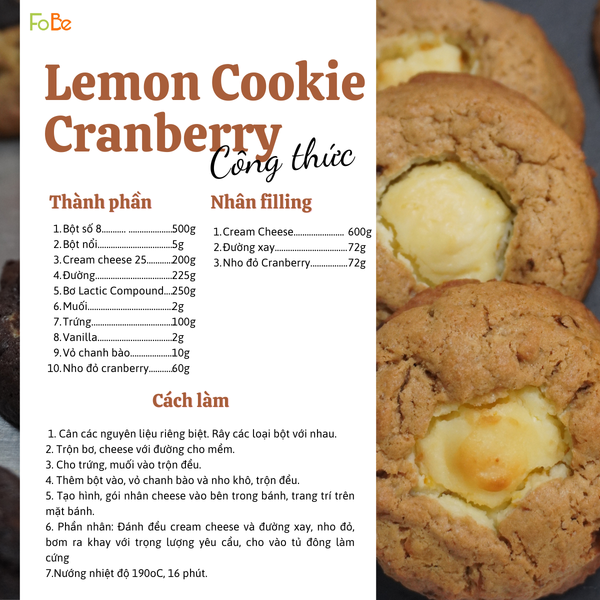 Cùng FoBe chinh phục trọn bộ 4 hương vị New York Cookies đặc sắc nhất, đảm bảo sẽ khiến mùa Giáng Sinh của bạn ngọt ngào hơn bao giờ hết!Lemon Cookie CranberryThành phần